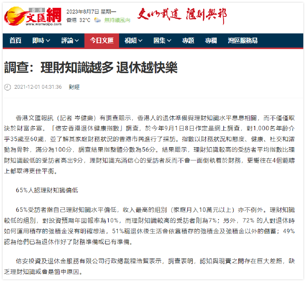 - 4 in-depth interviews were arranged with spokespersons, allowing the client to talk about retirement wealth management in more detail